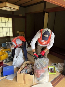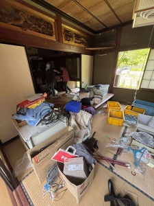前日から引き続きとなるお宅にこの日も作業に入りました。先にも書きましたがこの日は参加者も少なかったため5名での作業となりました。午前中のみ作業して現場を後にすることになりましたが、その時点で軽トラ2台分満載の分別・搬出が出来ました。