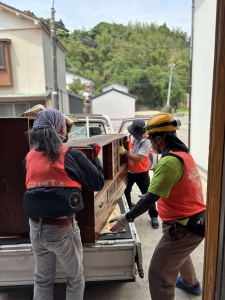 おらっちゃ七尾に集まったボランティアは50名。ちょっと参加者が減少してきている感じです。この日は男性6人のチームで細口町のお宅で活動しました。ボランティアが入るのは初めての現場で、全部処分の依頼だったのですが、やはり、依頼主さんが精査したいとのことで、見聞を待ちつつ作業をしました。思い出に折り合いをつける時間も大切。しかしながら解体の日は決まっているので、迅速に作業できるところは迅速に軽トラ5台分の家財を搬出し、半分くらいの進捗で後日に継続の案件となりました。休憩中の差し入れのアイスが身に染みる暑さでした。