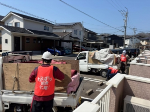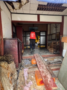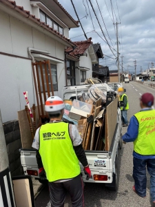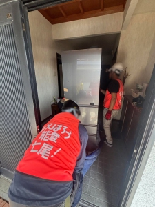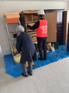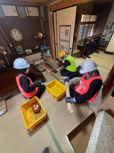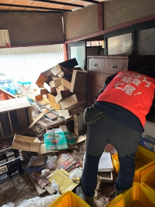 下記の写真は、もう一名のメンバーが入った家財搬出の作業の様子。こちらは公費解体のためではなく賃貸として貸し出すための家財搬出でした。生活のベースが変わってしまったので日々の管理費との見合いで人に貸すことにしたという事でした。やはり人の数だけ暮らしの事情というのもはあるのだなぁと実感しました。終日作業で無事完了。