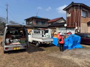 仮置き場まで2往復して午前中の作業は終了、午後のチームに作業を引き継ぐことになりました。