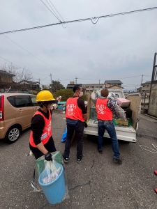 分別・搬出班の方ですが、こちらは相続人不明のまま震災直後から放置されてお宅で、写真を見ていただくと分かるようにかなり大変な状況、かつ床が腐敗していたり、柱も歪んでいるような危険な状況。注意しながら比較的安全な部屋から軽トラ1台分の家財を搬出しましたが、やはり危険が大きいので本部と相談してそれ以上の作業はしないことにしました。このような家は他にもあり、行政がどのように対処していくか問われるケースが今後増えると思います。ラスト2枚は石崎の春祭りの写真。今までの日常がすこしずつ戻ってきている足音を感じさせる春となっています。