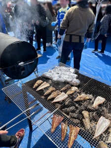 初日は残念ながら雨模様だったこともあり人出も少なめでしたが、日曜には天気も回復し多くの方にご来場いただけ、多くの方にこれらの美味しい魚介を、満開の桜を見ながらご堪能いただけたのではないかと思います。