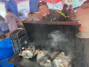 また、マグロの頭も炭火で焼き、こちらはふるまいとして提供しました。