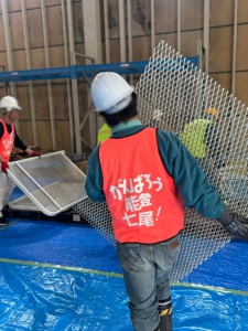 僕は技術系チームのハツリのお手伝いを2時間ばかりしてから、オリエンビデオ用にソフト系団体が開催しているお茶会の取材に。ほか2名のユニコンチームはこの日も4人編成で公費解体となる石崎町のお宅の分別・搬出を行いました。