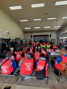 本隊5名、深夜1時におらっちゃに到着し、 ゆっくり仮眠して万全の体調で活動に臨みました。 先乗りの2名と一緒に七尾湾東端に突き出した崎山町鵜浦漁港の 側のお宅で不要家財の分別、運び出し。 既に一度作業に入っているお宅で、その時にビニールに梱包したものをまず旭町の仮置場へ移送しまし た。往復約1時間かかるため、 その後我々が分別したものなど含めて、 この日は結局、軽トラ4杯分の分量しか搬出出来ず、 継続案件となりました。そうそう、NHKの「明日をまもるナビ」の取材が来ていました!
