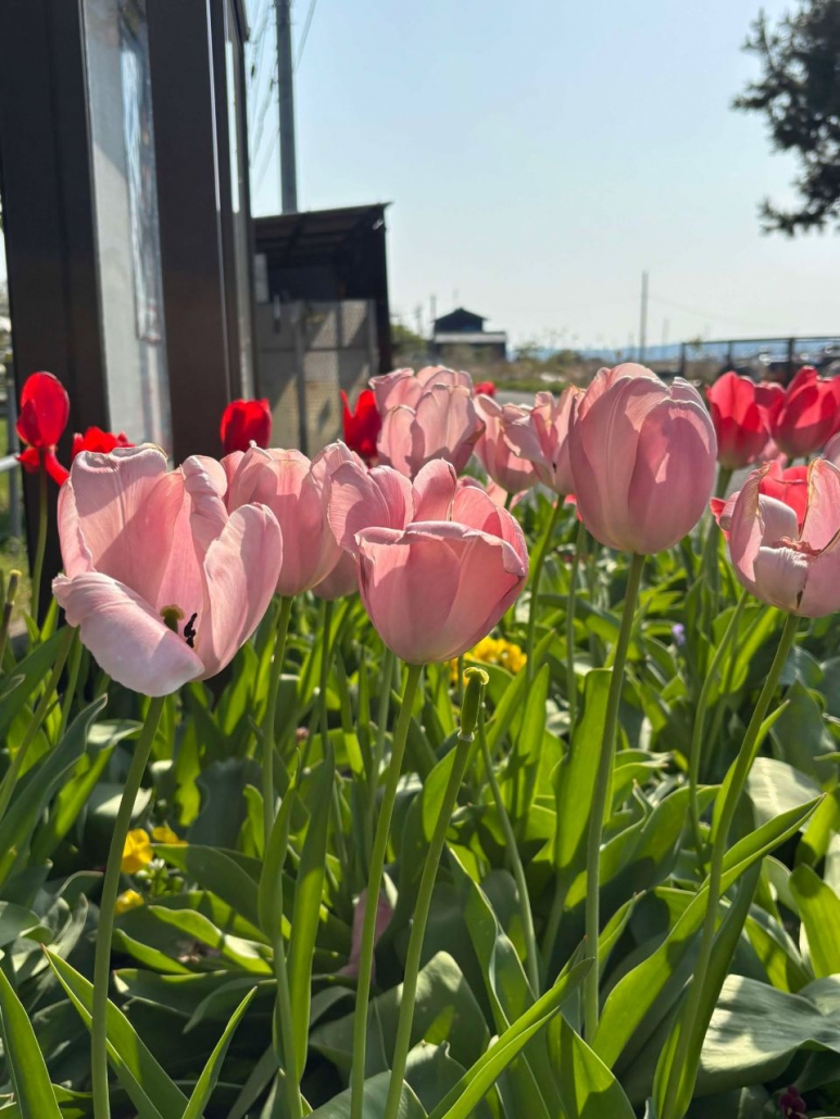 作業を終えておらっちゃ七尾に戻ると建物の裏側にチューリップが一輪咲いていました。七尾は桜の季節が終わってチューリップが咲き誇っています。川沿いや花壇的なところ以外にもこのような感じで野原にポツポツと咲いているのを見かけることが多いです。七尾は今、本当にいい季節を迎えています。