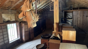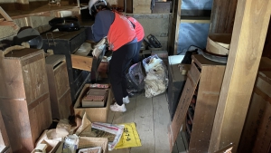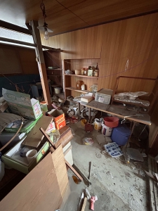 午後からは、メンバー1名が別のチームに合流し、新規案件である中島町のお宅へ向かいました。こちらでは、公費解体を控えた土蔵の2階部分に残された物品の仕分け作業を担当させていただきました。