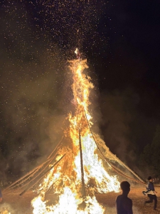 作業後には、少し足を延ばして能登島へ。この日は日本三大火祭りの一つに数えられる「向田の火祭り」が開催されていました。高さ30メートルにもなる巨大な松明が燃え上がる光景は圧巻で、地域の伝統文化の力強さに深く感動しました。