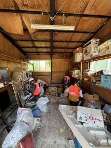 午後からは本府中町のお宅で作業していたチームに合流し、10名で母屋と納屋の片付け作業を行いました。こちらは物量が多く、この日の作業だけでは終わらず、翌日に持ち越すことになりました。
