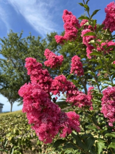 厳しい暑さが続く能登ですが、ふと道端に目をやると、サルスベリの鮮やかな花が満開に咲き誇っていました。力強く咲く夏の花の姿に、私たちも復興へ向けてさらに前進していこうという勇気をもらいました。