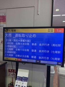 夜通し降り続いた大雨の影響は甚大でした。JR七尾線は運休、国道249号線は一部が陥没するなど幹線道路の各所が通行止めとなり、地域の用水路も危険なほど増水していました。
